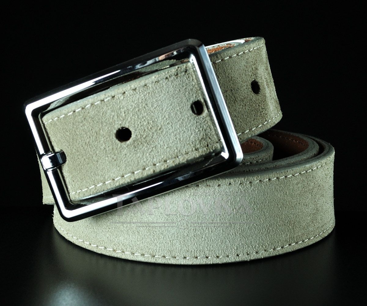 Шкіряний ремінь унісекс з натурального замшу, бежевий (3,5 см)
