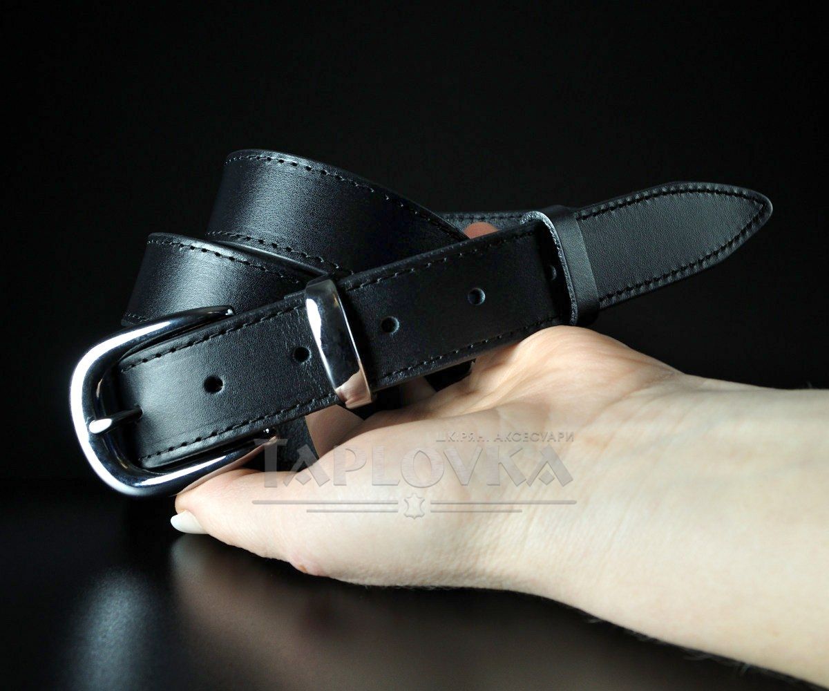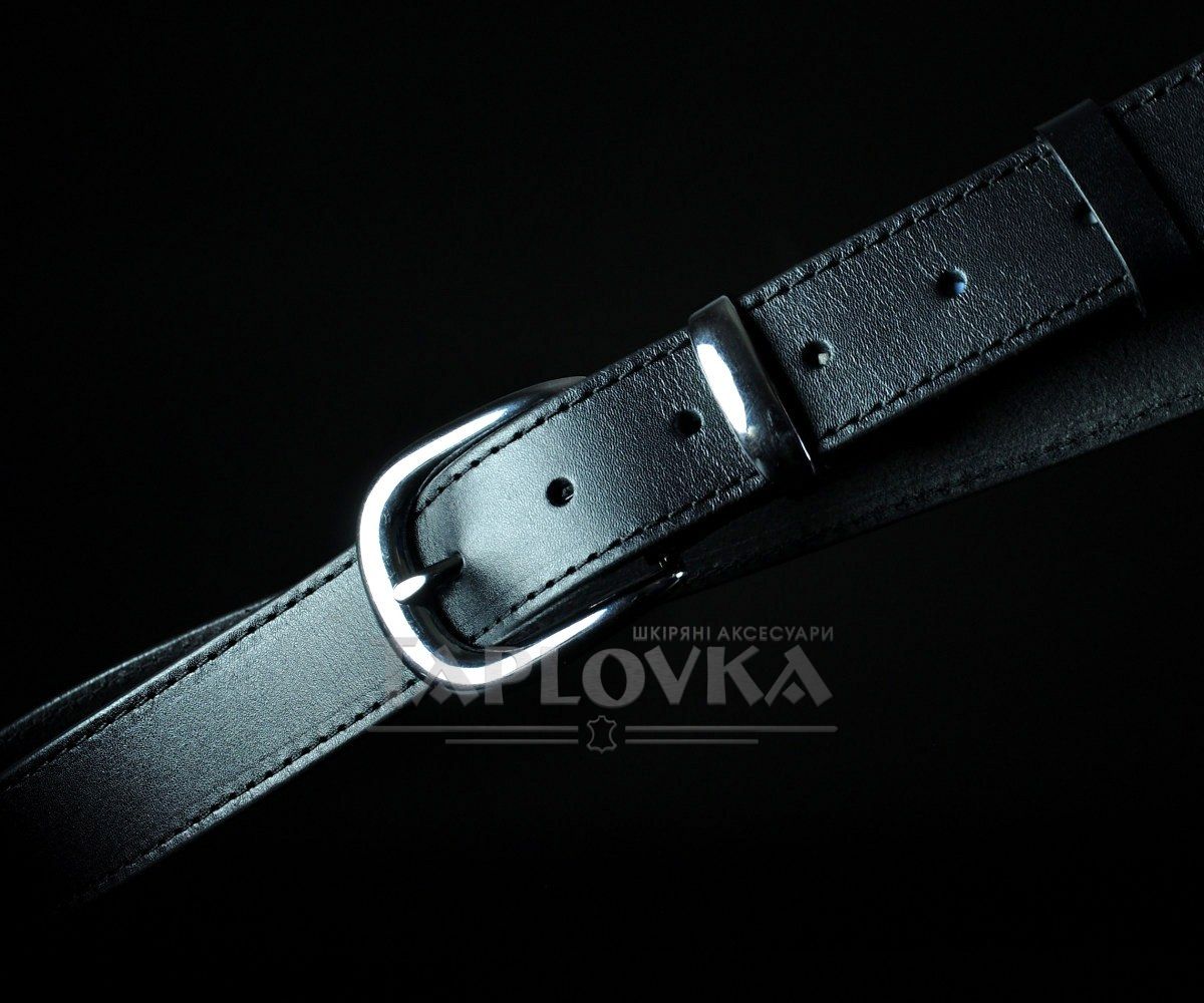 Жіночий шкіряний пасок Sfip чорний, гладкий з прошивкою (3 см)