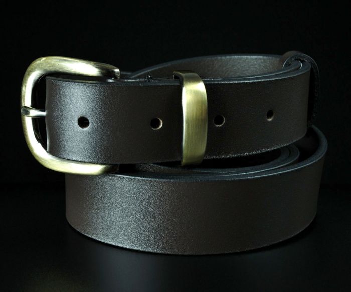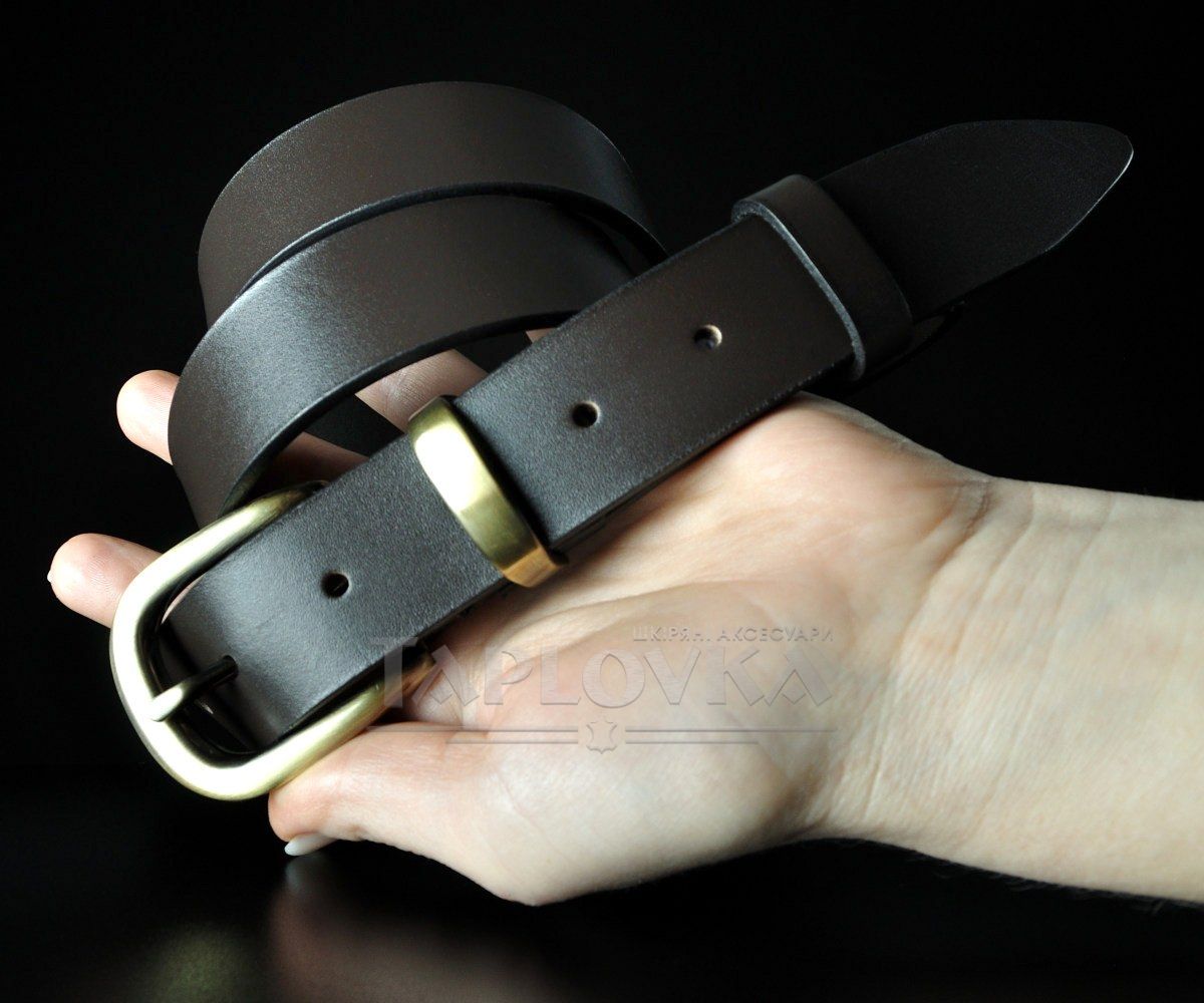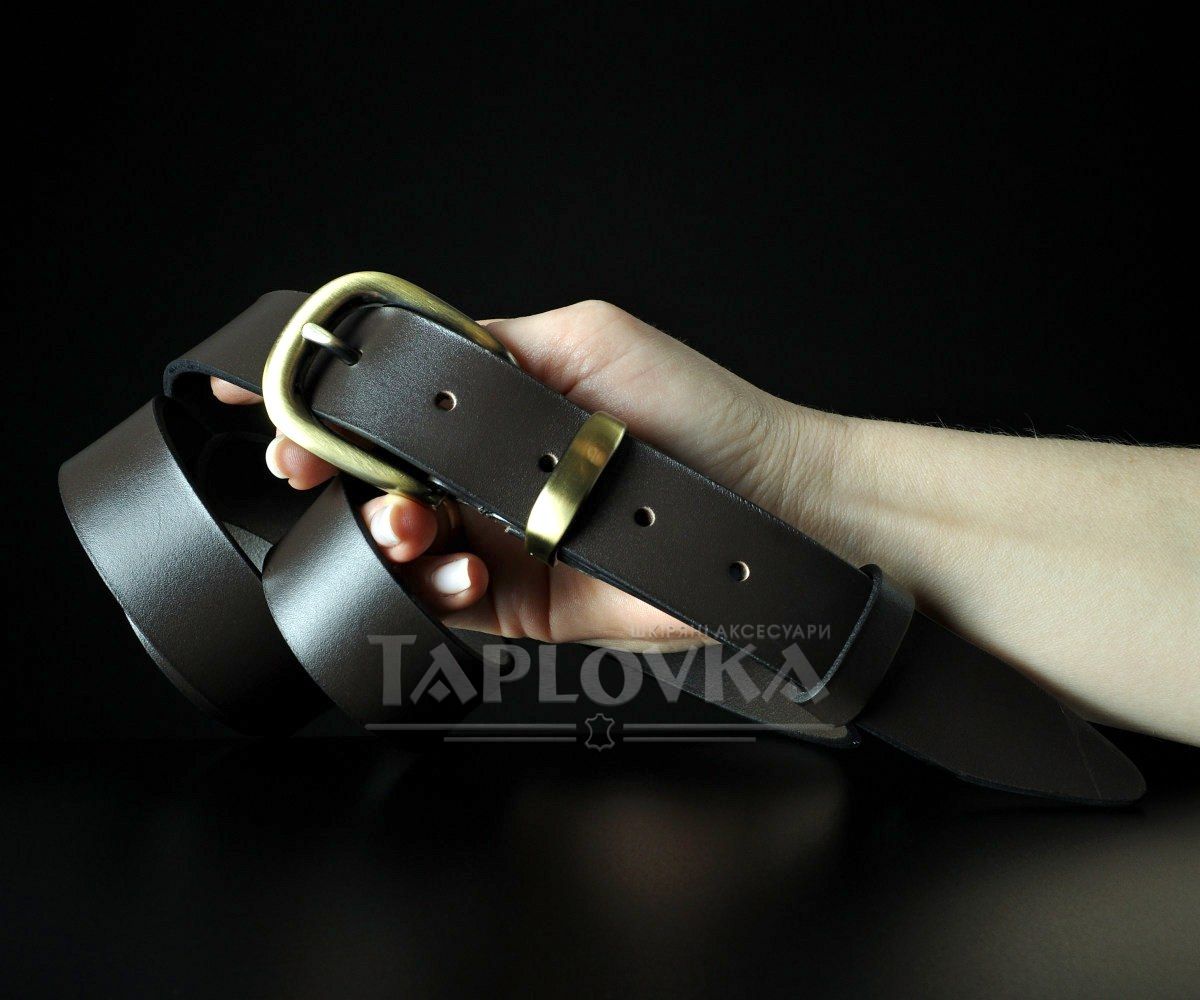 Жіночий пасок середньої ширини від українського бренду Sfip. Модель виготовлена зі 100% натуральної шкіри з гладкою фактурою у приємному коричневому кольорі. Особливістю цього аксесуара є надійна металева пряжка класичної форми із золотистим покриттям, яка гармонійно поєднується з теплим відтінком полотна. Ширина виробу становить 3 см, що є стандартним параметром для більшості повсякденних брюк та джинсів.