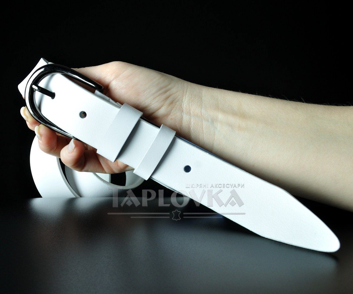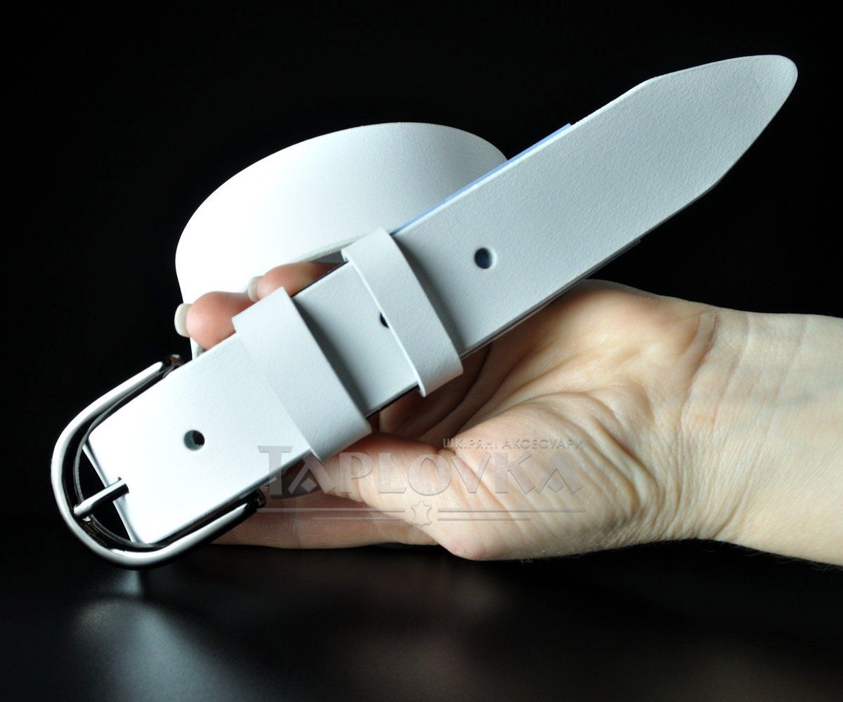 Жіночий шкіряний ремінь Sfip білого кольору, гладкий (3,5 см)