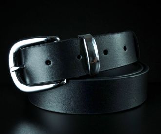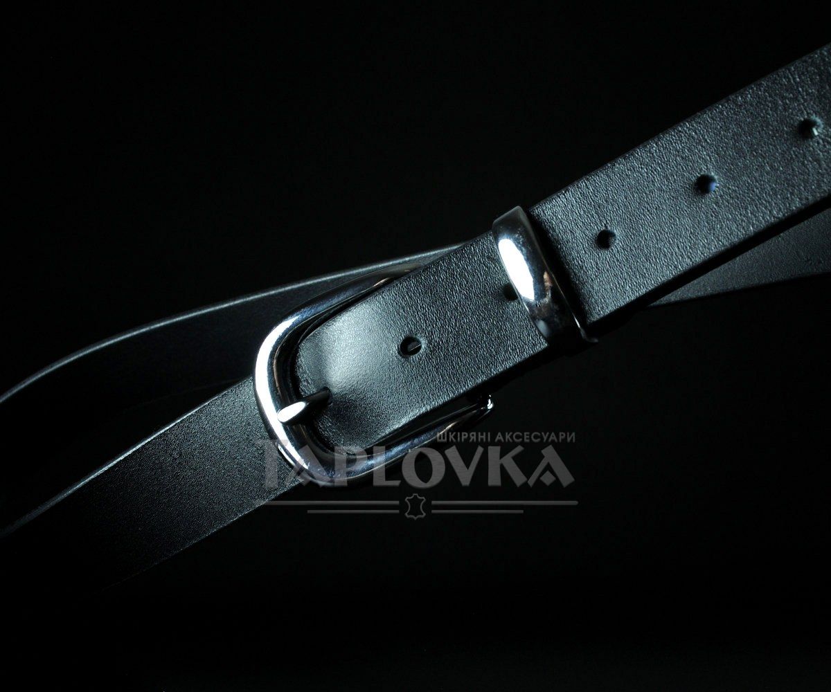 Базова модель жіночого ременя від українського бренду Sfip. Цей аксесуар повністю виготовлений зі 100% натуральної шкіри чорного кольору з рівною гладкою фактурою. Виріб має стандартну ширину 3 см, що робить його зручним для використання з більшістю моделей штанів та джинсів. Дизайн доповнює надійна металева пряжка класичної форми у світлому відтінку нікель.
