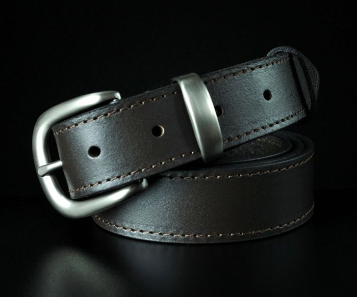 Класичний жіночий пасок від українського бренду Sfip. Аксесуар повністю виготовлено зі 100% натуральної гладкої шкіри в універсальному коричневому кольорі. Для підвищення міцності та створення візуально завершеного контуру краї полотна акуратно прошиті. Модель має стандартну ширину 3 см і комплектується надійною металевою пряжкою класичного типу у витонченому відтінку темний нікель.