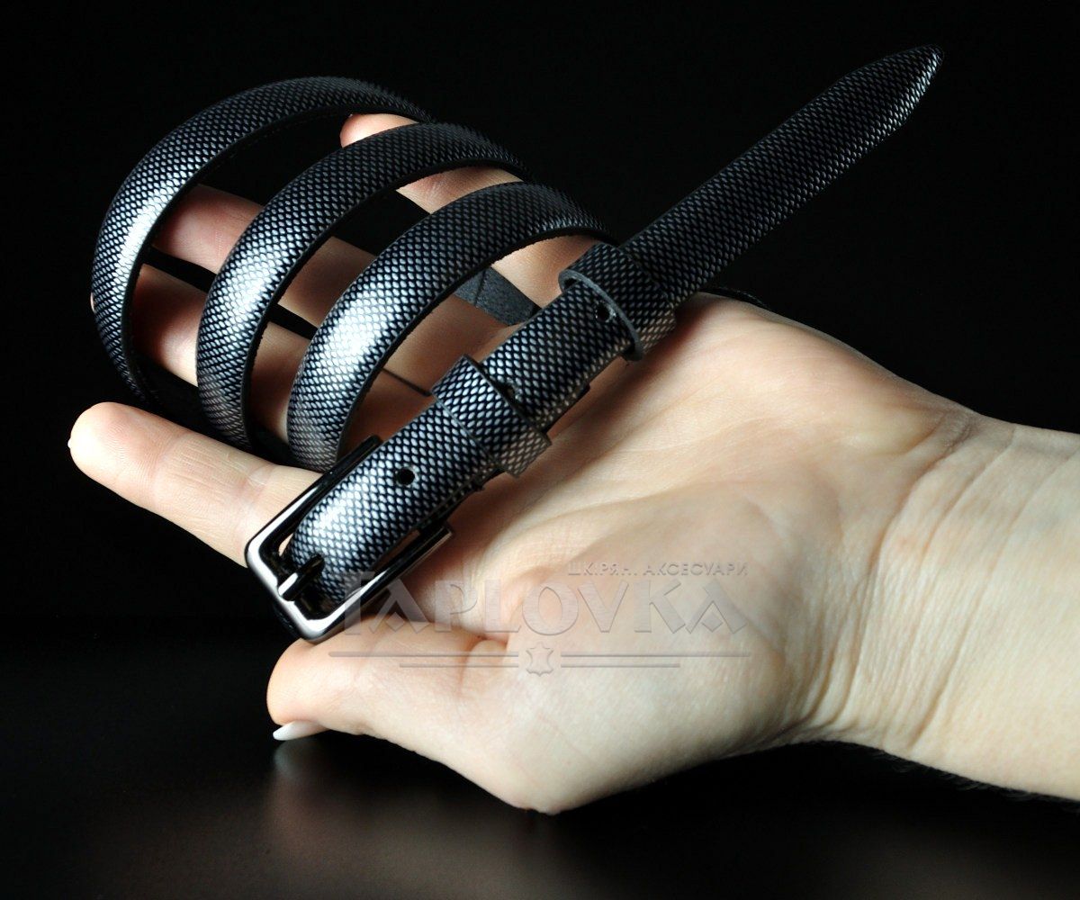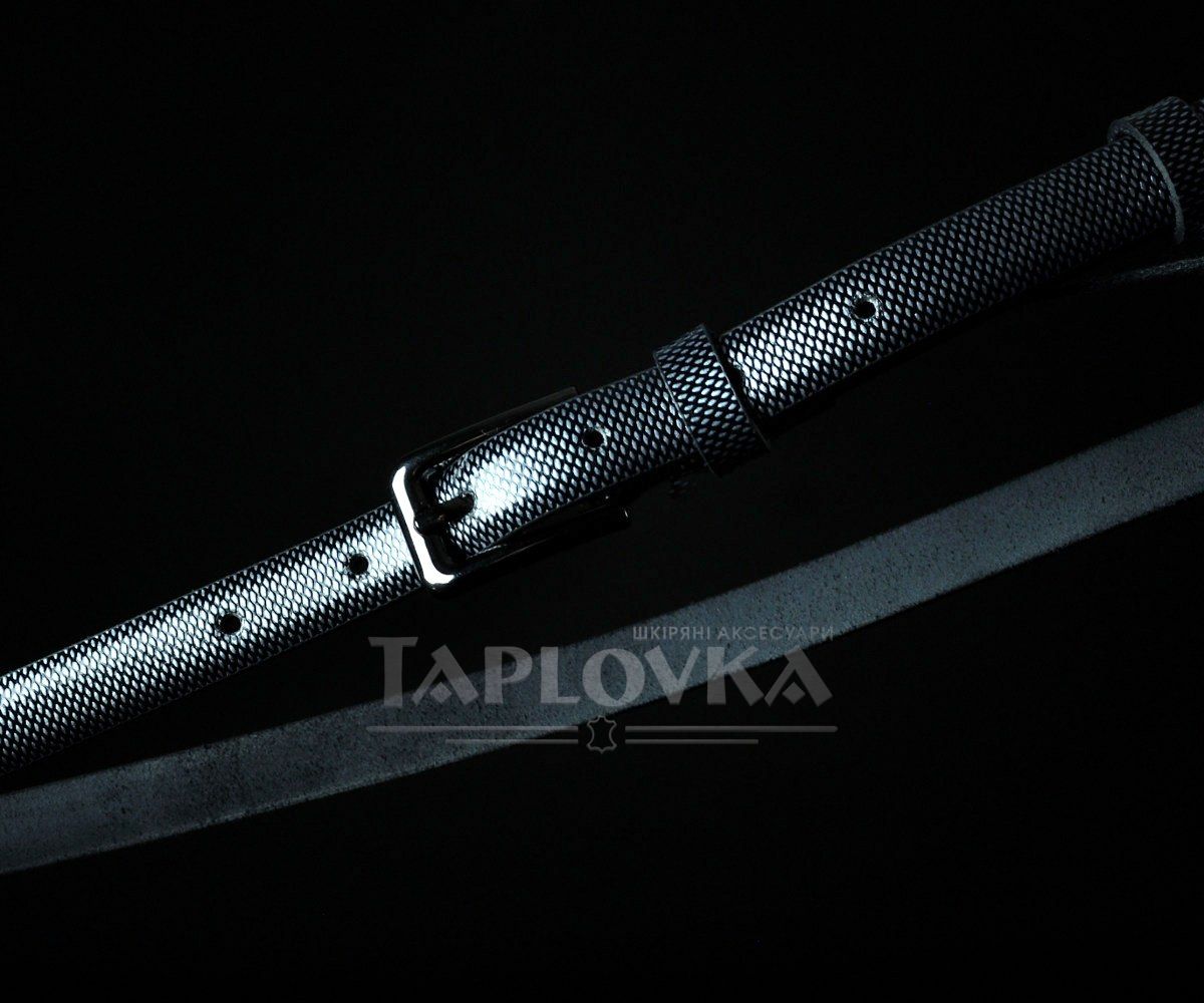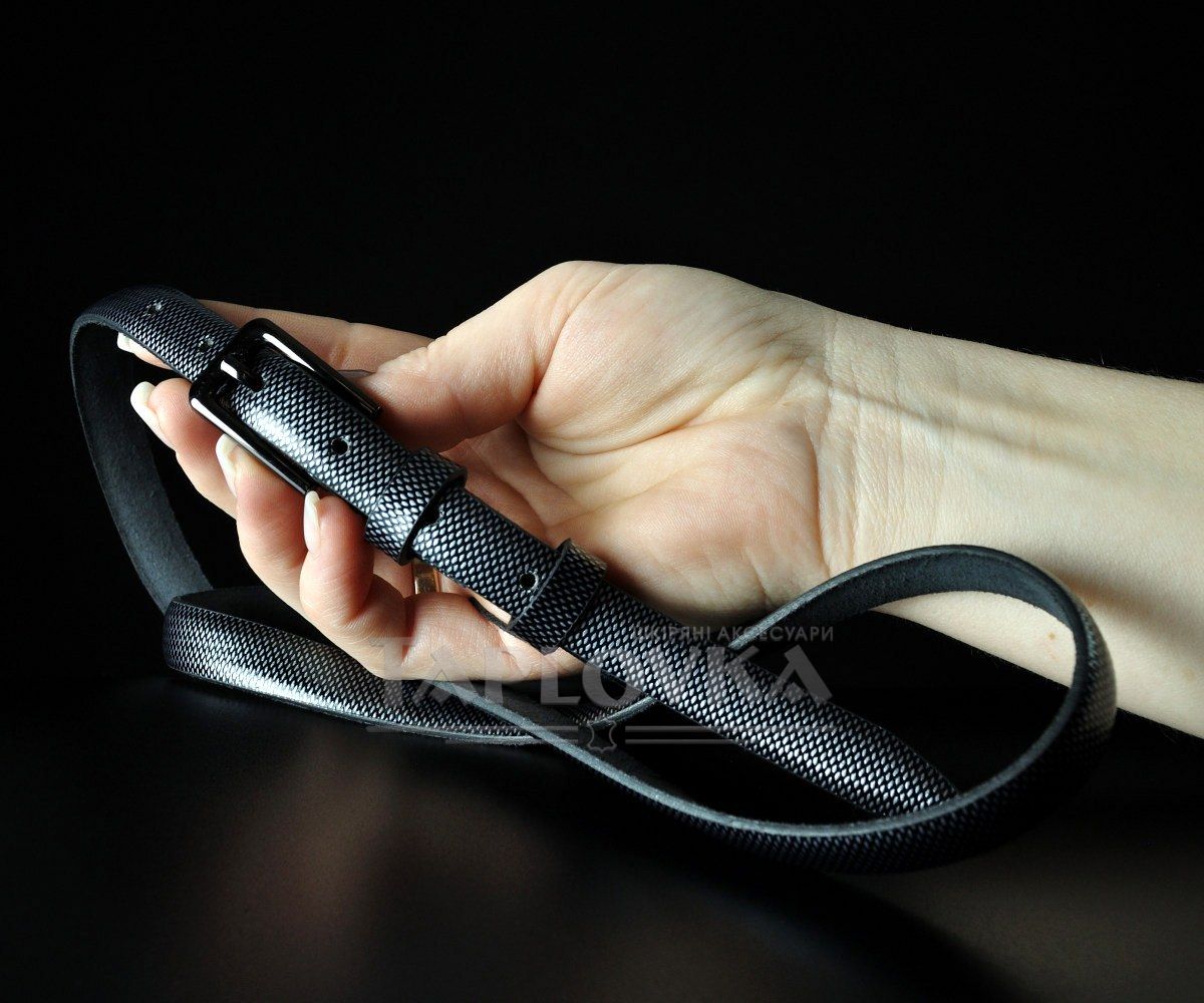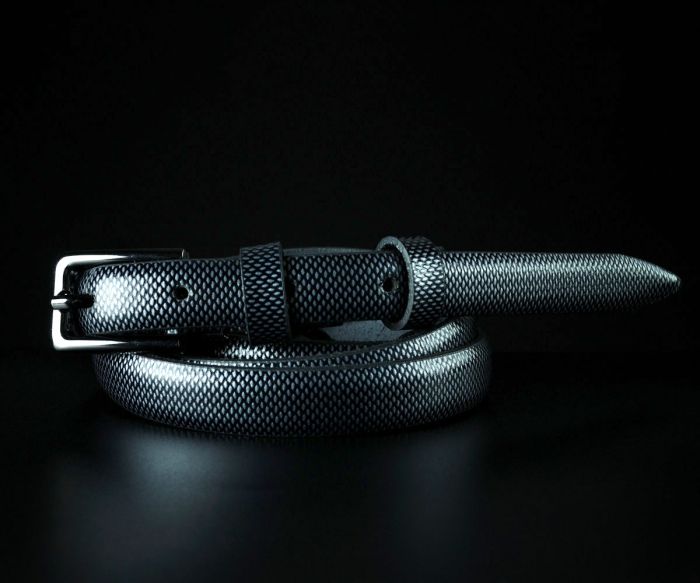 Жіночий шкіряний ремінь Sfip "під рептилію", чорно-сірий (1,5 см)