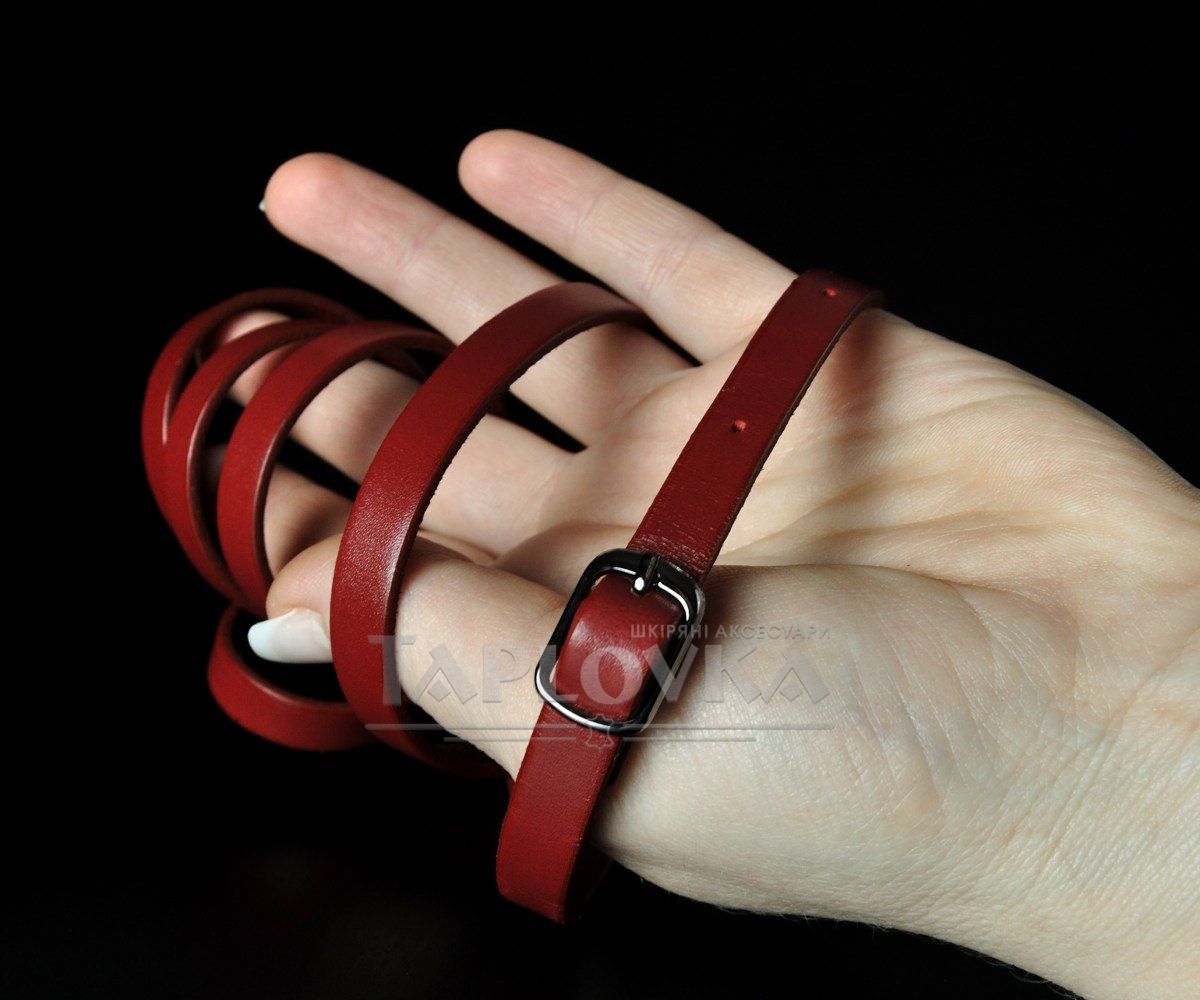 Елегантний тонкий жіночий ремінь від українського бренду Kremen. Аксесуар виготовлено зі 100% натуральної шкіри насиченого червоного кольору з ідеально рівною, гладкою фактурою. Виразним акцентом моделі є мініатюрна металева пряжка-качелька, виконана в ефектному кольорі чорний глянець. Завдяки мінімальній ширині всього 1 см, цей пасок створений для делікатного підкреслення талії на сукнях, туніках, подовжених сорочках або легких кардиганах.