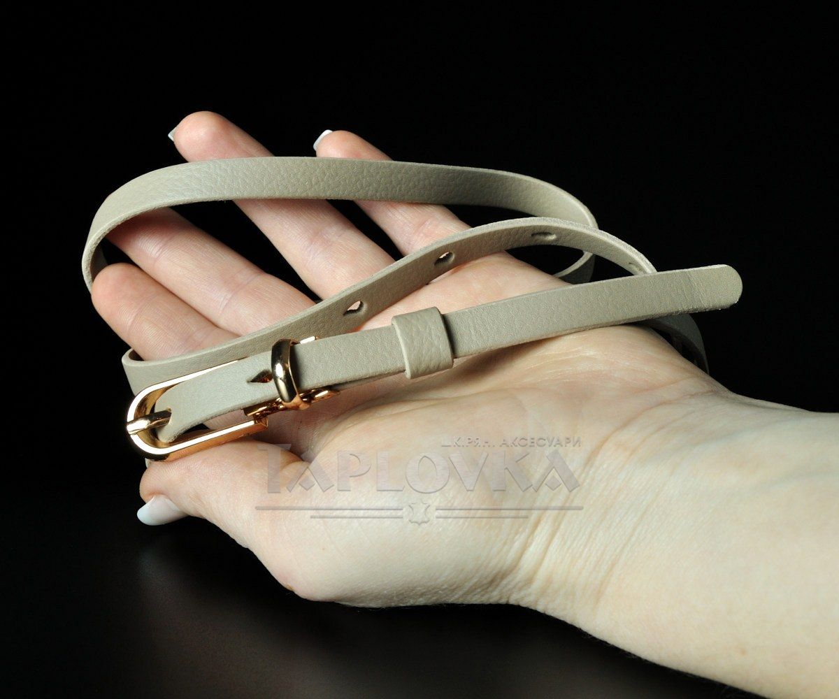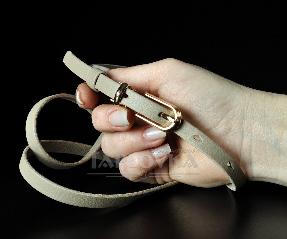 Жіночий вузький шкіряний ремінь Kremen бежевий, турецька шкіра (1 см)