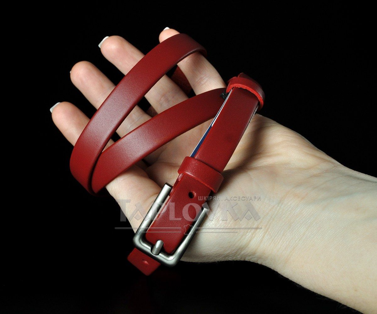 Жіночий вузький шкіряний ремінь Kremen червоний, гладкий (1,5 см)