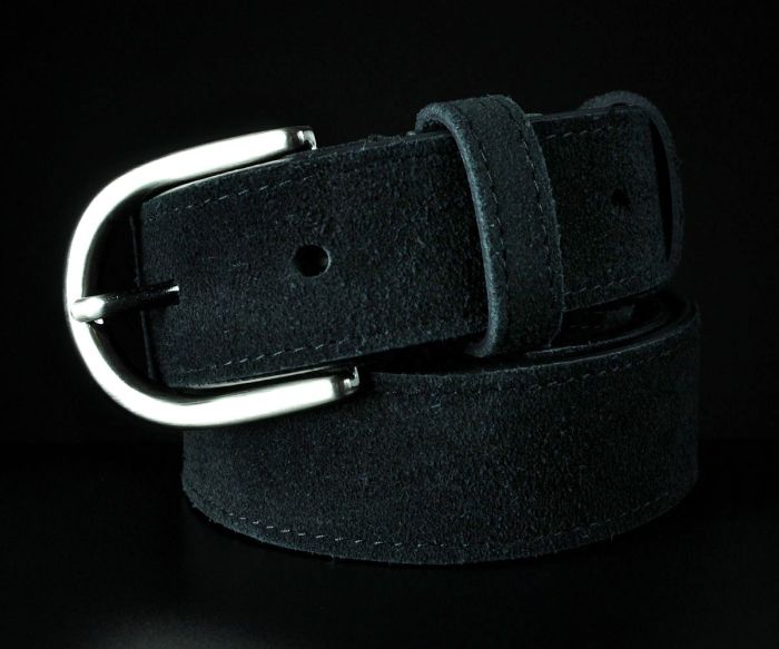 Жіночий ремінь від українського виробника Sfip, що поєднує в собі практичність та приємну текстуру. Виріб виконано зі 100% натуральної шкіри із замшевою поверхнею у базовому чорному кольорі. Полотно має акуратну прошивку вздовж країв, що підвищує зносостійкість аксесуара. Модель шириною 3,5 см укомплектована надійною металевою пряжкою класичного типу у відтінку темний нікель.