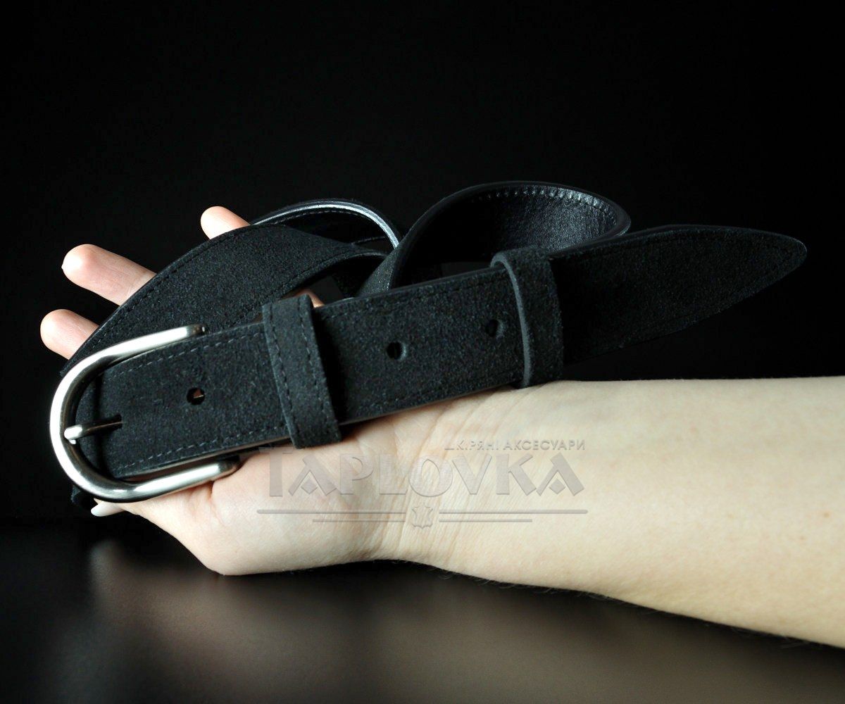 Жіночий замшевий ремінь Sfip чорний, прошитий (3,5 см)